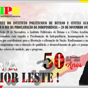 IPB is a new public institute of higher education located in Betano, Manufahi Municipality, Timor-Leste, established by Decree Law No. 45/2016, dated 9th November.