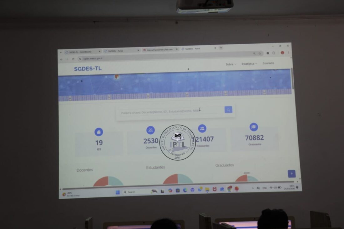 Betano, 25 Setembro 2026 – Instituto PolitΓ©cnico de Timor-Leste (IPTL) nia MagnΓfiku Prezidente Mestre Alcino da Costa Isaac A Fernandes M.Ed, abertura ba atividade deziminasaun Sistema SGDES-TL husi ekipa Diresaun Nasional SiΓ©nsia Teknolojia (SiglΓ‘ PortugΓ©z, DNCT) MinistΓ©riu Ensino Superior Siensia no Kultura (SiglΓ‘ PortugΓ©z, MESCC) nian iha Lab IT – IPTL.