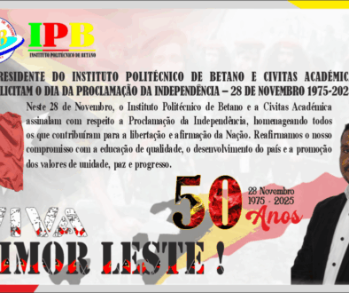 Institutu Politekniku Betanu (IPB) liu hosi Eskola Superior Engeñaria (ESE) Kursu Konstrusaun Sivil (KKS) realiza iha serimónia lansamentu fatuk dahuluk ba konstrusaun Auditória IPB ne’ebé partisipa hosi magnífiku prezidente IPB sr. Acacio Cardoso Amaral, Ph.D ho strutura sira iha kampus IPB, segunda ne’e.